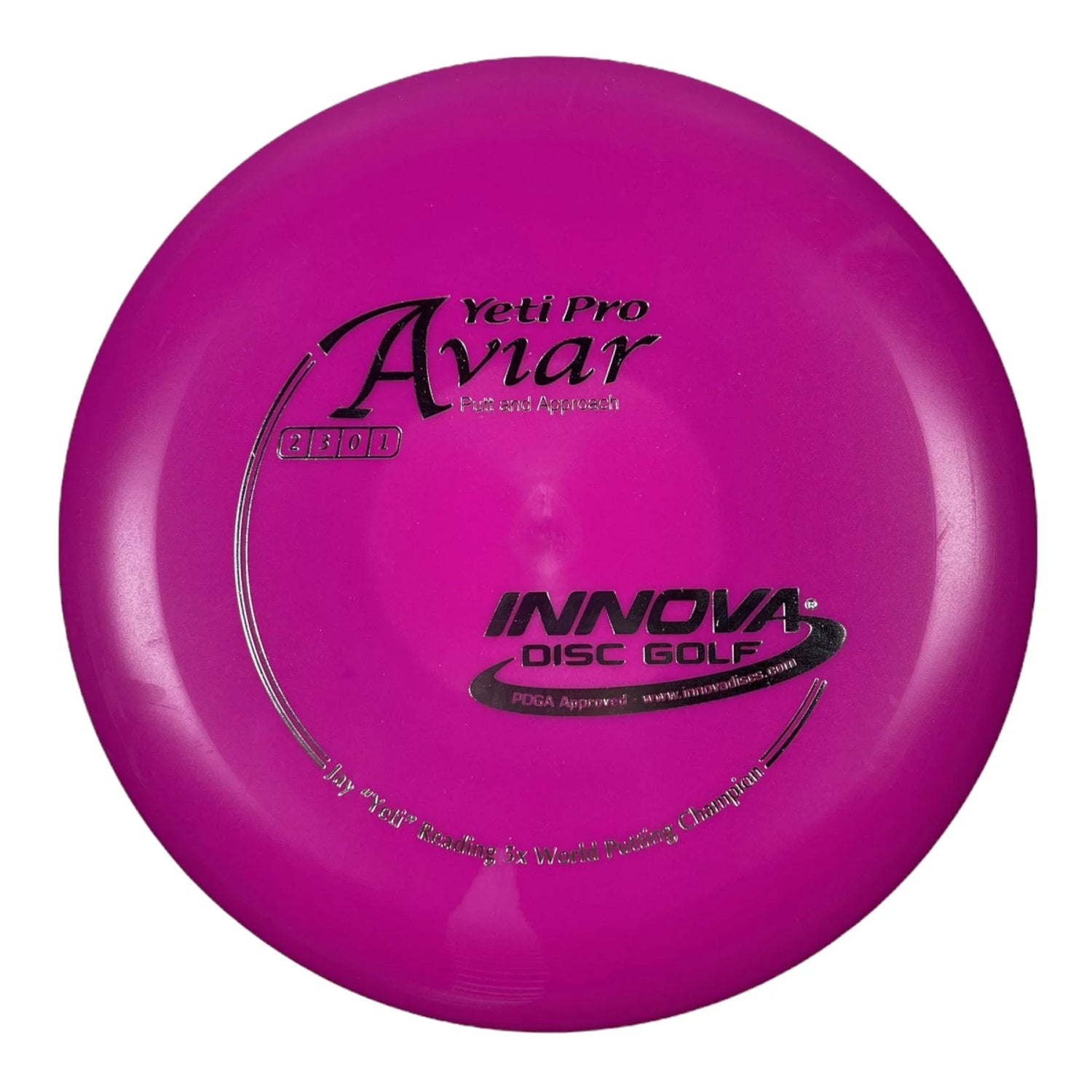 | The Yeti Pro Aviar is a straight flying putter. Innova developed the Yeti in a firm, grippy blend of Pro blend of plastic. It's somewhere between DX and R-Pro in both grip and firmness. The unique slightly concave top allows for a lower profile and a straighter flight than the other big bead models (KC Pro, JK Pro & Aviar Driver). The grippy firm plastic feels great in your hand in any weather. |