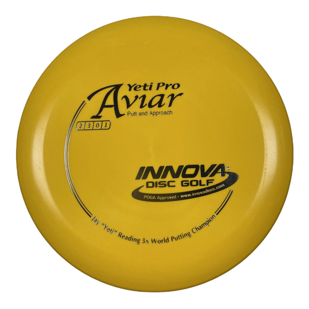 | The Yeti Pro Aviar is a straight flying putter. Innova developed the Yeti in a firm, grippy blend of Pro blend of plastic. It's somewhere between DX and R-Pro in both grip and firmness. The unique slightly concave top allows for a lower profile and a straighter flight than the other big bead models (KC Pro, JK Pro & Aviar Driver). The grippy firm plastic feels great in your hand in any weather. |