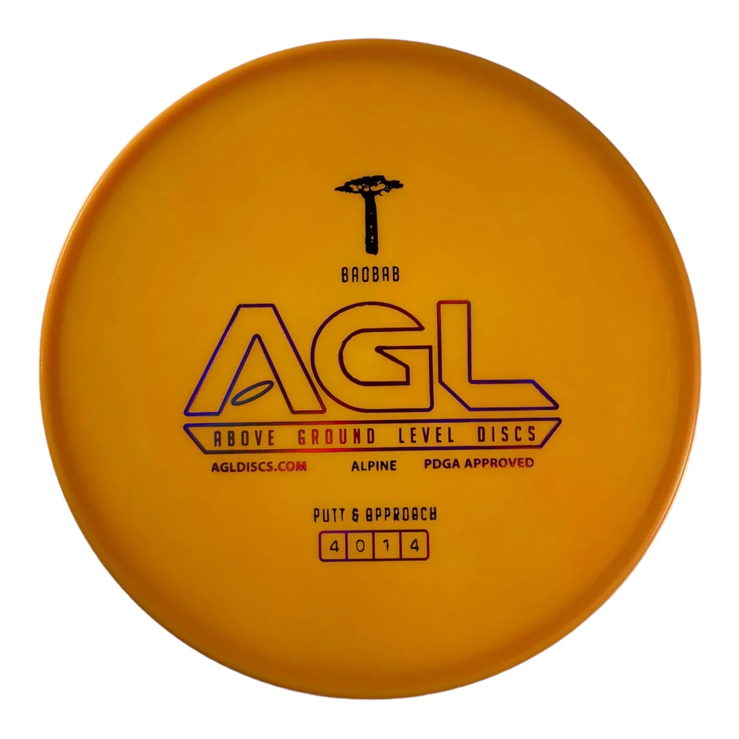 | The AGL Discs Baobab is an extremely overstable putt and approach disc golf disc. This disc does not like to fly and when it does, it likes to fade hard. No one term can quite define the Baobab but it has quickly become a favorite among those who have thrown it. |