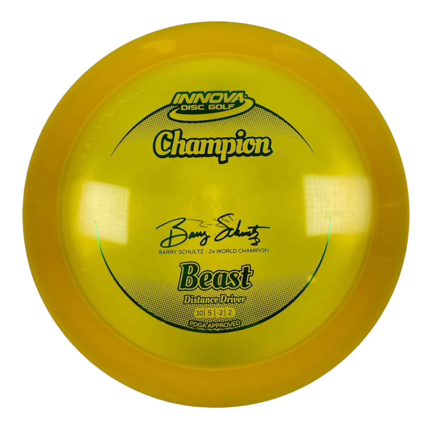 | The Beast was issued in the era of the wide rimmed driver. It was an instant classic when it was released; giving players more distance using less power. The Beast’s high glide, high speed and high speed turn all combine to give big distance. It is suitable for beginners and pros alike. The Champion Beast is endorsed by two-time World Champion Barry Schultz. |