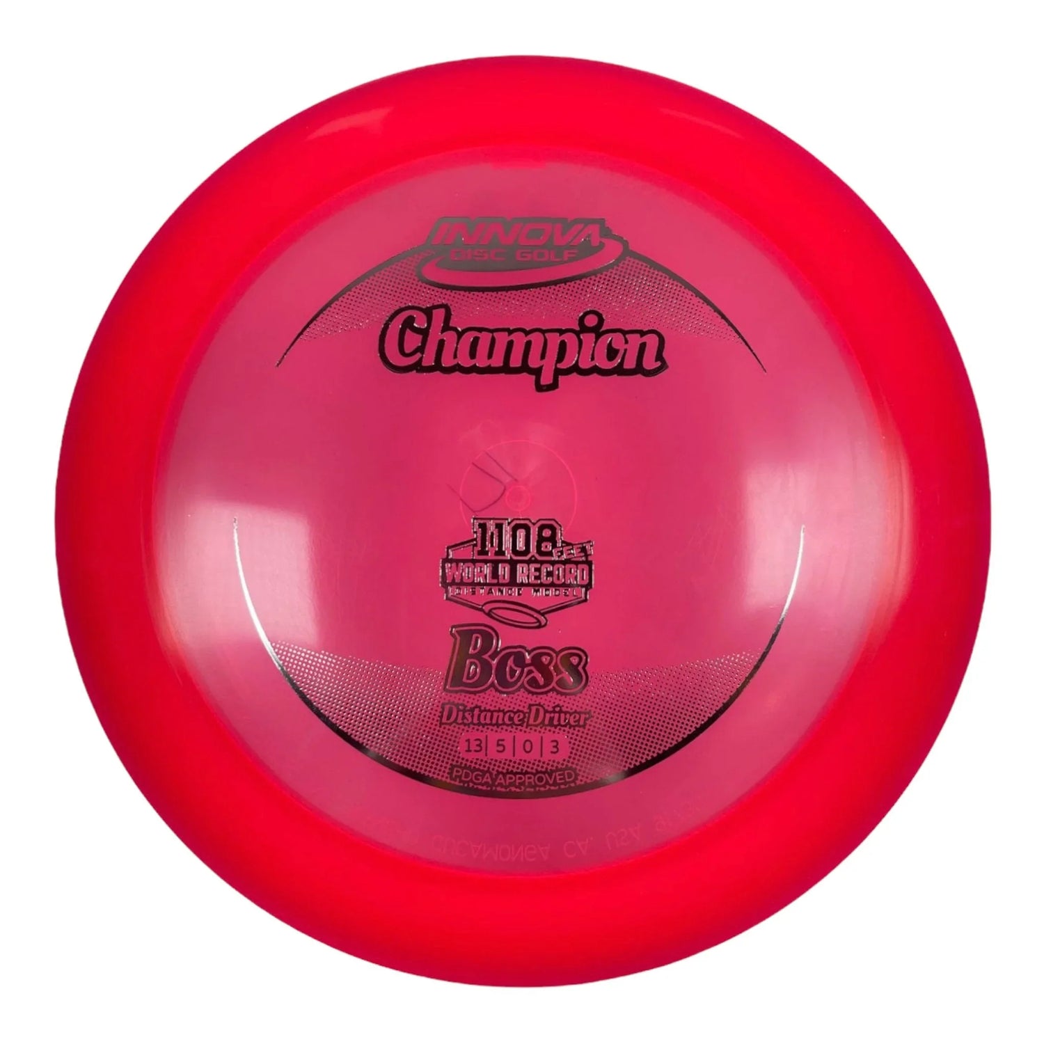 | This is a fast stable driver that can handle full power throws and moderate headwinds. Advanced players and sidearm throwers will appreciate the dependable stability. The Boss has a slight high speed turn to help maximize distance with a predictable fade. David Wiggins Jr used a 154 gram R-Pro Boss to set the World Record 338 M (1108.92 feet). for the longest throw in March 2016. The Champion Boss flight numbers have been updated to better reflect the more stable flight. |