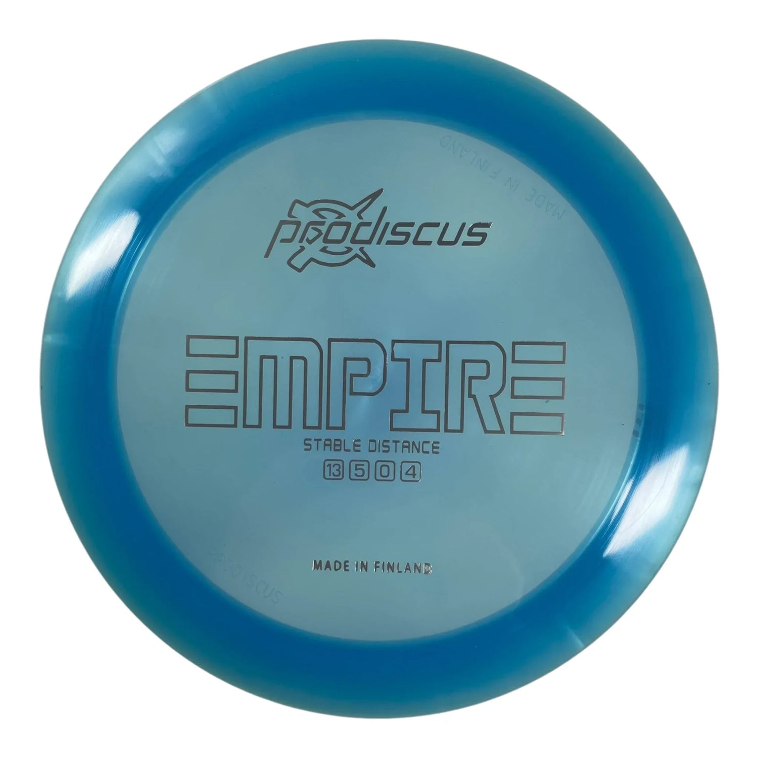 | The Prodiscus Empire is a high-speed driver designed for advanced players seeking a beefy, overstable flight. Its thin profile and wide rim offer a comfortable grip and effortless release, allowing for maximum distance and accuracy. With its reliable fade and ability to handle high power throws, the Empire is the perfect disc for conquering any course and building your own disc golf empire. |