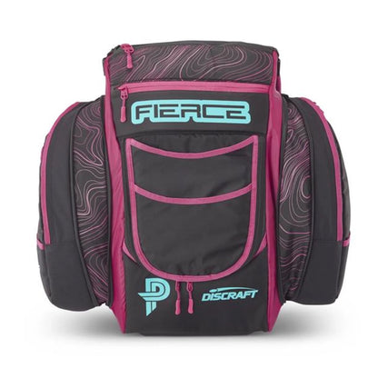 | Sale will include a Discraft Cryztal Fierce. The 2021 Paige Pierce Signature Grip bag is a representation of Paige’s love for adventure and her fierce competitive nature. This custom design theme features her iconic colors with a magenta topographic pattern and turquoise. |