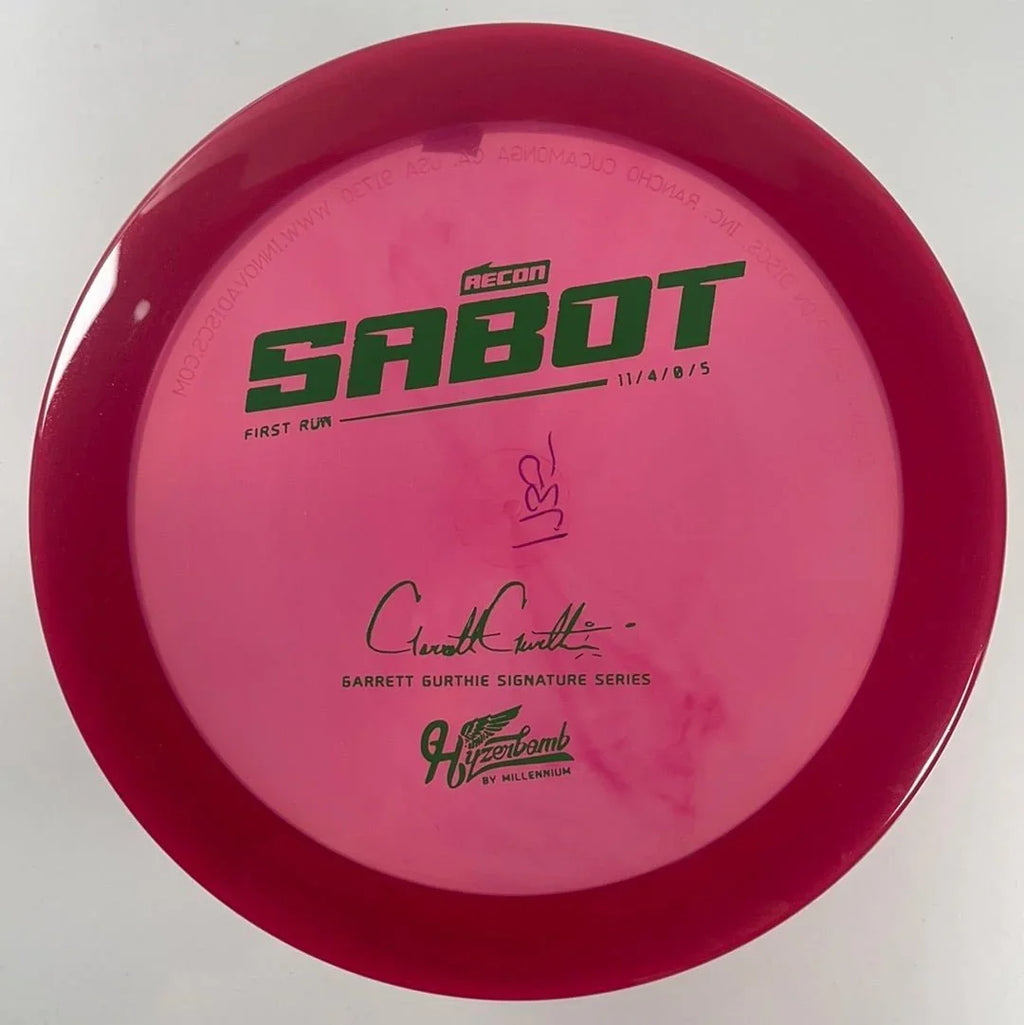 | The Hyzerbomb Recon Flat Top Sabot is an overstable power driver. With fast speed and a blunt nose you can bomb this disc with all you've got, and it delivers a consistent hyzer line with good glide. This disc golf driver has strong distance for headwinds, sidearm blasts and shots that need a reliable and hard fade finish. |