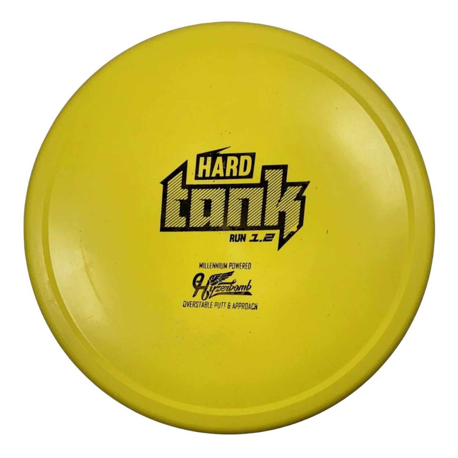 | The Hyzerbomb Base Hard Tank is a stable to slightly overstable putt and approach disc made with the original Tank mold in a stiffer plastic. It’s the more stable version of the Tank. The rim has a broad profile that grabs the chains upon impact and a comfortable extra wide patented Thumtrac grip. The Hard Tank, formerly the Panzer, holds a line when thrown into a headwind and is great for putting on windy days. |